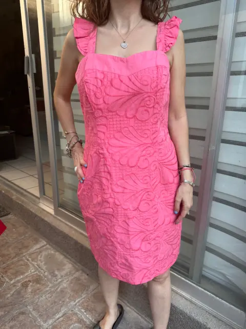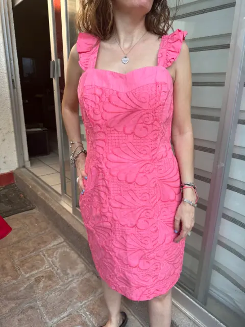vestido lilly pulitzer. sin detalles talla M, bonito y cómodo es fresco ideal para esta temporada, va con todo color rosita y detalle de florees como bordadas