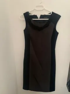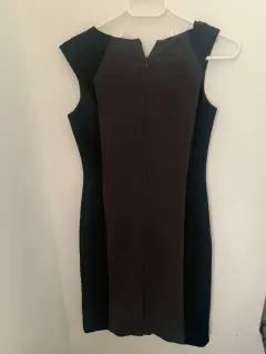 Vestido lindo. Vestido entallado gris cn negro, y detalle de collar llega a la rodillla, ideal para trabajar.