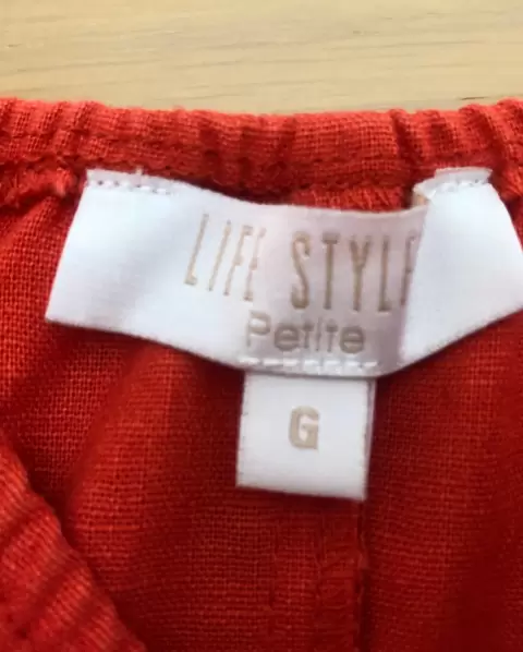 Vestido Lino naranja Life corto Style G. Vestido corto de Lino color Naranja, con Olán al frente, que puede bajarse a los hombros, marca life Style talla G