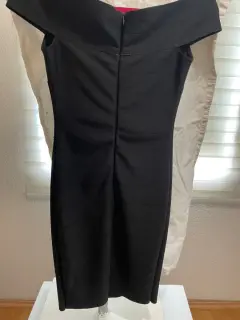 Liz Minelli Vestido Negro Color Negro Talla SMaterial suave y ligero No cierre Stretch Estado Usando buen estado Precio 250Largo Rodilla Largo 77Cintura 32 de frente Busto 37 de frente