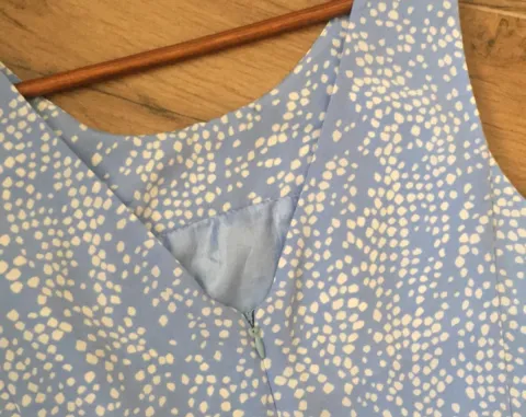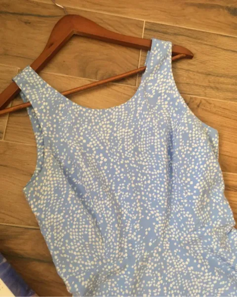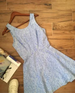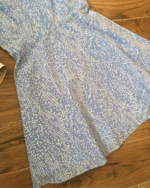 Vestido lunares. Vestido marca Forever 21 color azul cielo con lunares blancos, cierre en la espalda talla mediana corte A.