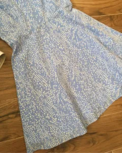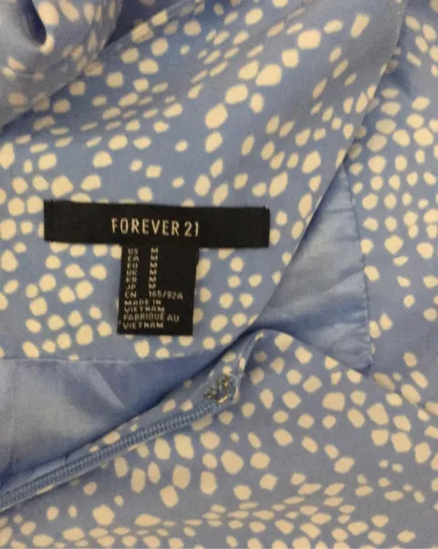 Vestido marca Forever 21 color azul cielo con lunares blancos, cierre en la espalda talla mediana corte A.