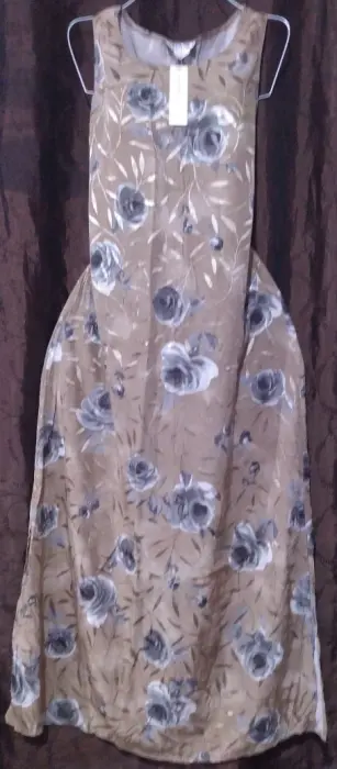 Vestido color café con flores y detalles vistosos en talla M, marca rolling over