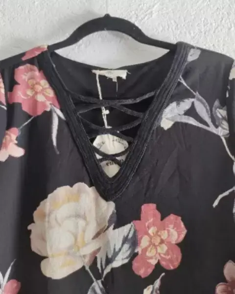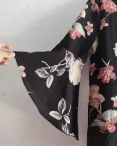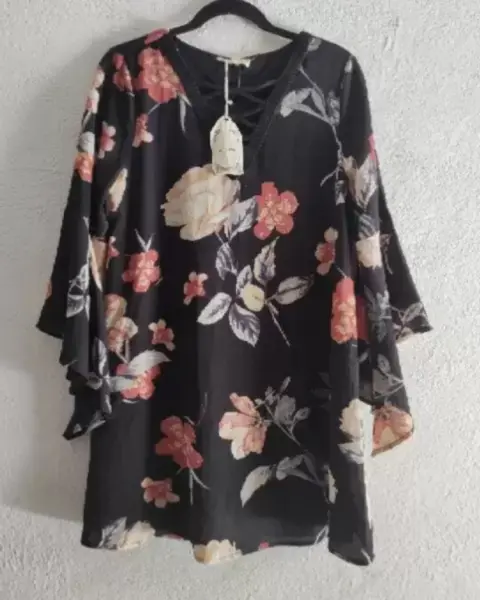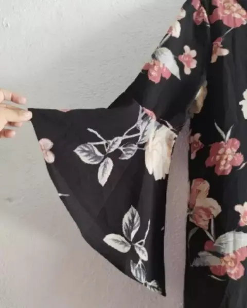 Hermoso vestido talla S, manga de campana, con forro y detalle cruzado en cuello. Nuevo con etiqueta.Medidas:Busto:90 cmCintura:100 cmCadera:106-108Largo:85 cmBocamanga: 25 cmLargo manga: 47 cm