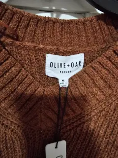 Vestido manga larga. Vestido manga larga tejido, a la rodilla color marrón, cuello en v, queda suelto, la parte de abajo es ligeramente más corto enfrente