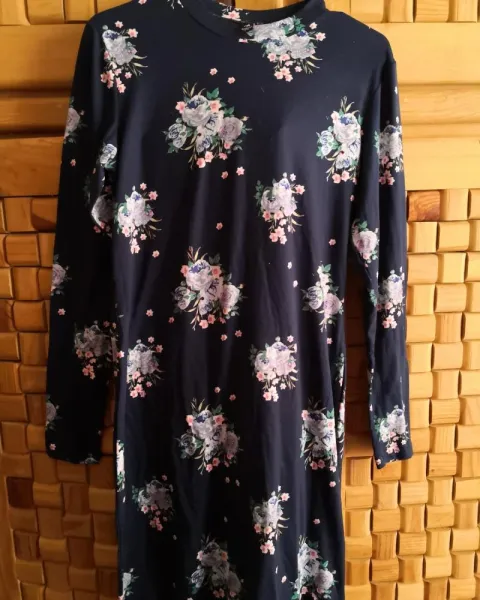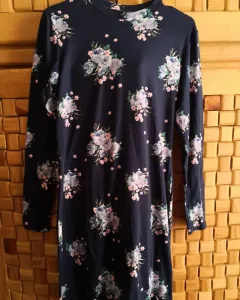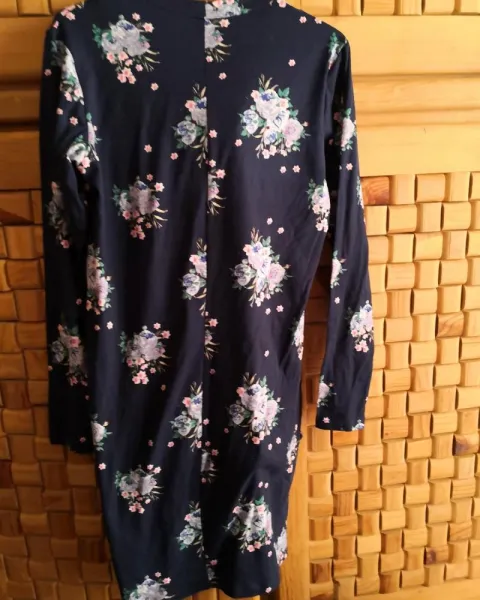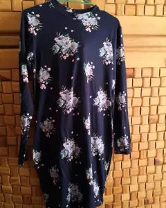 Vestido azul marino con flores manga larga te llega arriba de la rodilla esta nuevo sin etiqueta