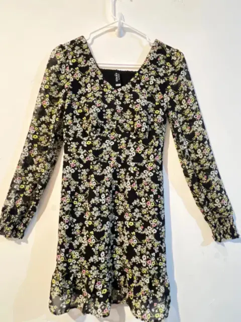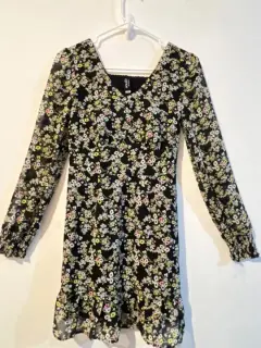 Hermoso vestido de manga larga con flores 🌺, tela delga excelente para primavera . Puedes usarlo para la oficina con zapatillas o de manera casual con tenis .Talla: CHSOLO SE USO UNA VEZ
