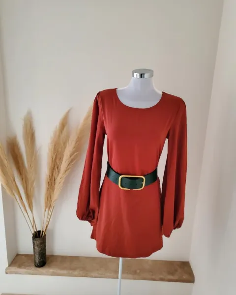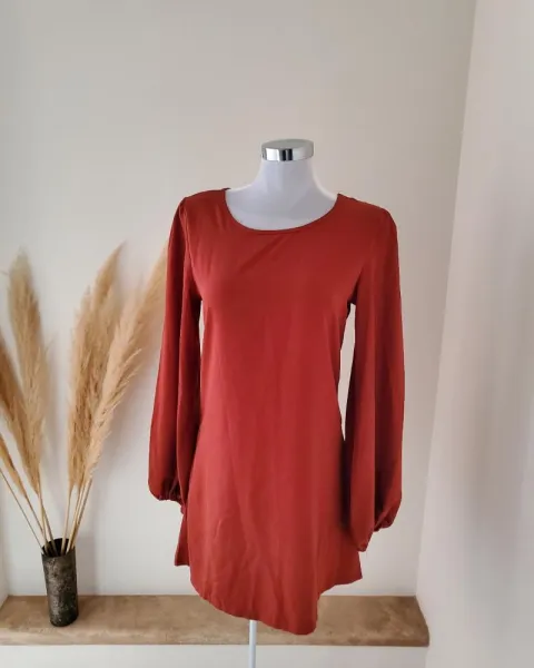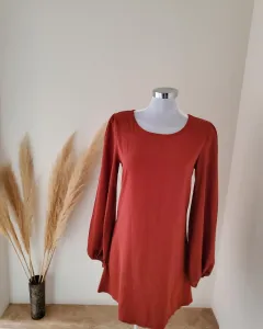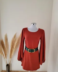 Vestido color marron/vino mangas acampanadas con resorte, altura a la rodilla amplio