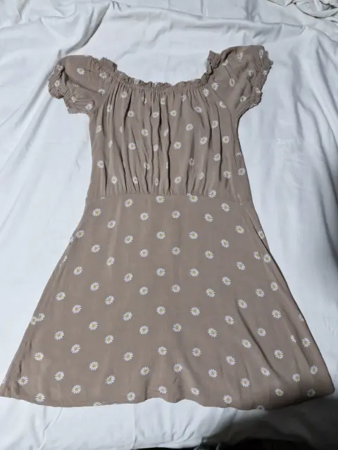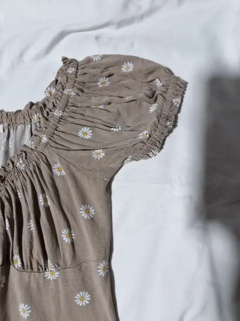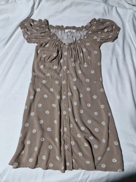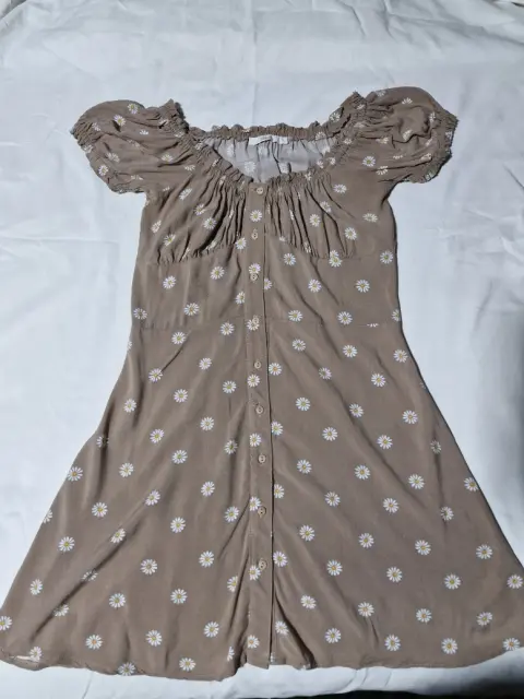 Vestido corto color café con estampado de flores marca SHASA, super fresco, con botones