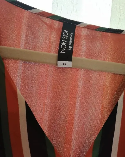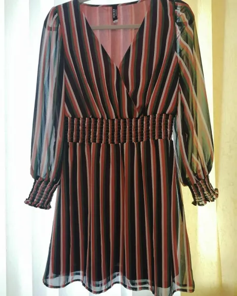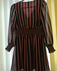Vestido con lineas marrón puesto solo una vez corte hasta arriba de la rodilla ajustable en la cintura