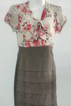 Vestido Maurices Vintage. Exquisito vestido inspirado en la moda de los 40's. Tiene un cómodo cierre lateral para compensar los botones aparentes en la parte superior del vestido.El toque final lo dan los cordones frontales que permiten hacer un moño coqueto.
