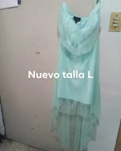 Vestido menta de dama. Vestido straples color menta con brillos en la tela cola de pato