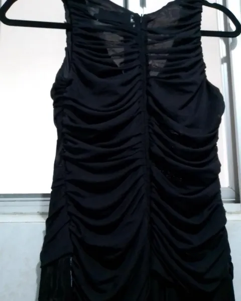 Vestido de mesh con hermosa detalle corrugado en la espalda que hace ilusión de volumen en las pompas y resalta la esbelta figura.