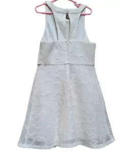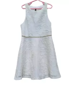 VESTIDO MESH COLOR CREMA,GRABADO DE FLORES,MARCA PINK VIOLET,DETALLE 2 CUBOS NO VIENEN,TALLA 10 AÑOS (REDUCIDO COMO A 8)MIDE 34 CM DE AXILA A AXILA,63 CM DE CINTURA, 72.5 CM DE LARGO,COLOR CREMA