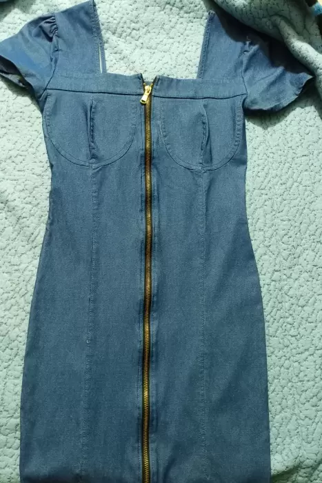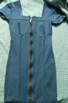 Vestido mezclilla. Vestido ajustado de mezclilla cierre frontal comprime y moldes el cuerpo