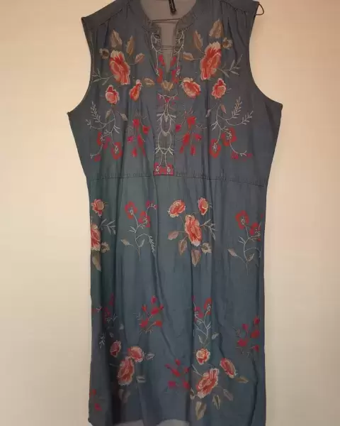 Vestido mezclilla bordado. Vestido de mezclilla muy suave, bordado muy cómodo y fresco