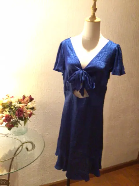 VESTIDO COLOR AZUL REY, MARCA MICHEL KORS COLOR AZUL REY, TALLA 8 CON CIERRE LATERAL, MANGA CORTA DE OLÁN Y EN LA PARTE BAJA TAMBIÉN TIENE OLÁN, TIENE UN DETALLE DE LISTÓN QUE SE PUEDE HACER UN LINDO MOÑO EN FRENTE, TAMBIÉN CON ABERTURA DEBAJO DEL LISTÓN QUE HACE LUCIR ESPECTACULAR, YA QUE MARCA EL CUERPO MUY BIEN, CON ETIQUETA.