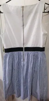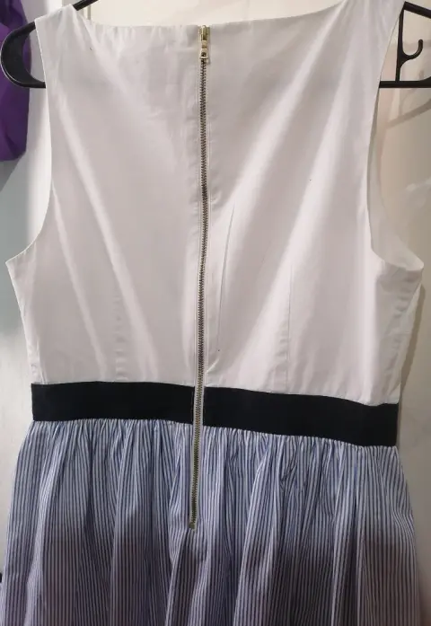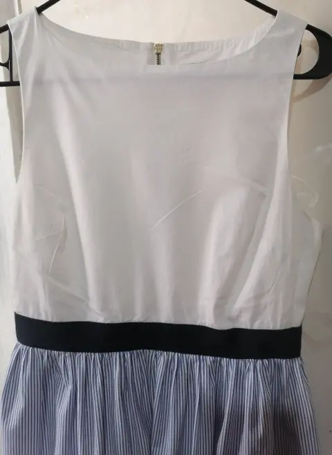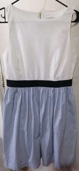 Hermoso vestido a la rodilla de cintura alta, cierre en la espalda y tela muy fresca.