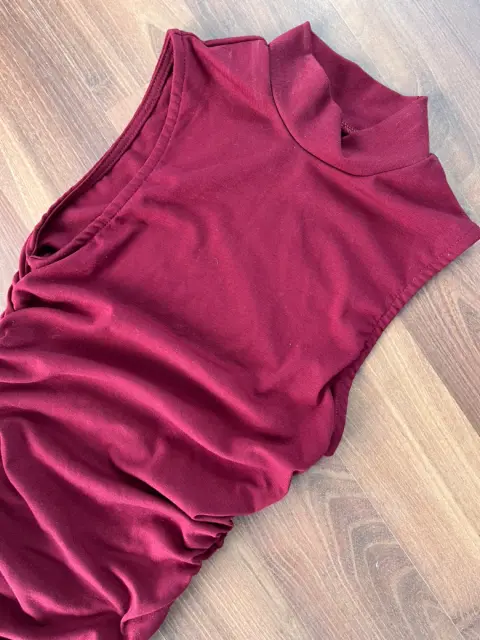 Vestido midi entubado. Muy lindo vestido midi guinda , es strech talla xs , con pliegues a los costados está muy lindo y ajusta perfecto . Hago combos y realizo envíos diarios.