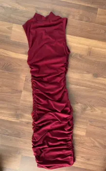 Muy lindo vestido midi guinda , es strech talla xs , con pliegues a los costados está muy lindo y ajusta perfecto . Hago combos y realizo envíos diarios.
