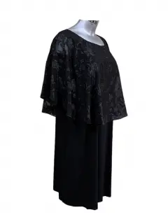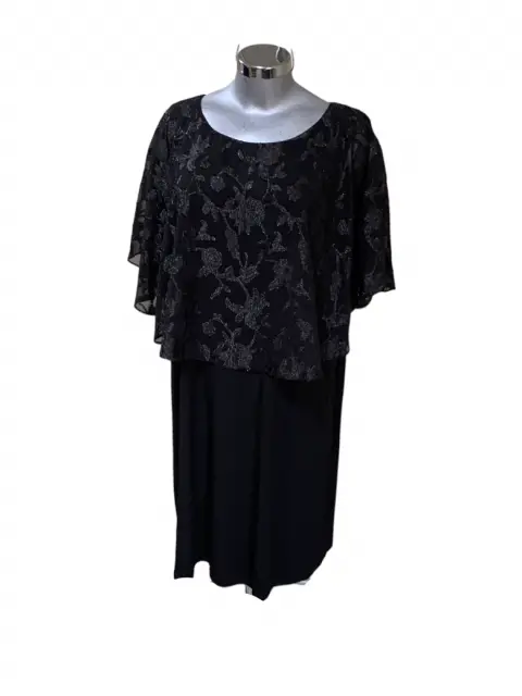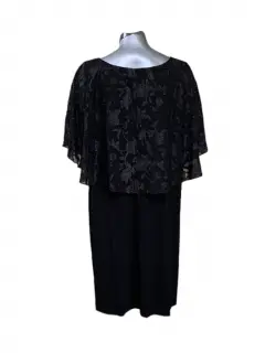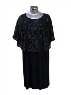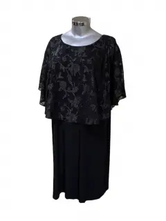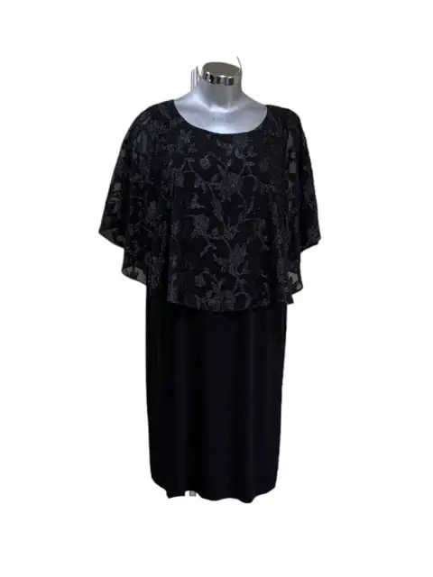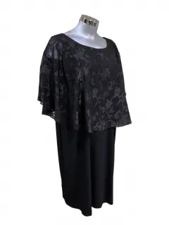 Vestido midi plus size negro. Vestido midi de 1 pieza aunque aparenta ser vestido y capa, negro, talla 24W, CONNECTED APPAREL
