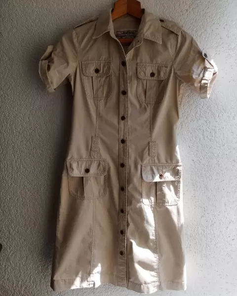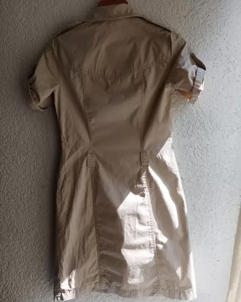 Vestido midi marca Banana Republic color beige talla 2, yo mido 1.70 m y me llega a la rodilla, es un vestido fresco, que entalla la figura, no estira, es tipo gabardina.Tiene un pequeño hoyito en la axila derecha, pero de ahí en fuera esta en perfecto estado.Te gusta?, Dime tu oferta ☺️