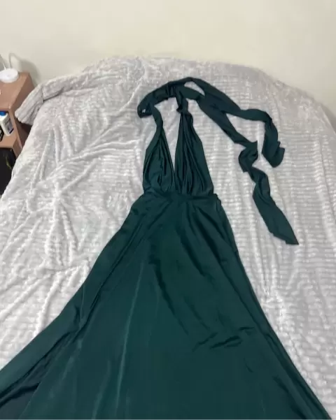 Vestido mil formas… se acopla a tu estilo y puedes cambiarlo cada vez que tú quieras .. imagina un vestido diferente para cada ocasión es largo y tiene una abertura en la pierna, se acopla a la talla y busto de cada una