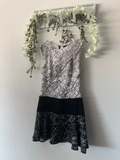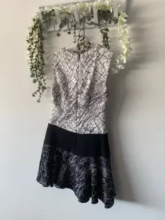 Vestido para fiesta minifalda color blanco y negro, tela q estira, sin mangas, va muy bien con medias y zapatos negros
