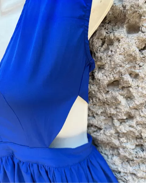 Vestido moderno. Lindo vestido moderno corto azul rey con etiqueta nuevo nunca se ocupo Sin detalles en perfecto estado