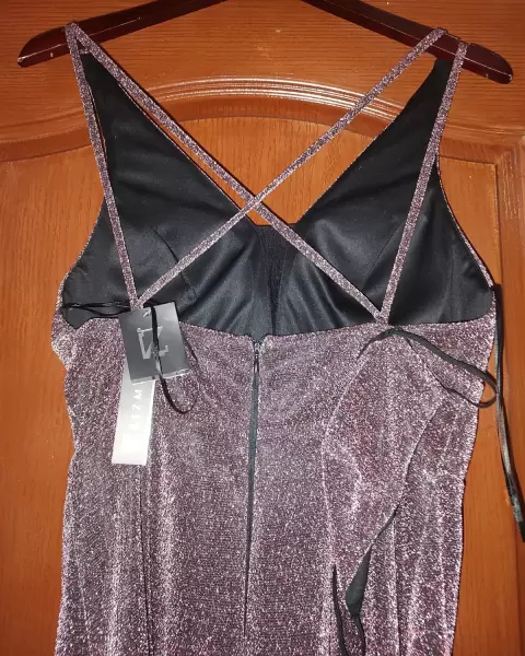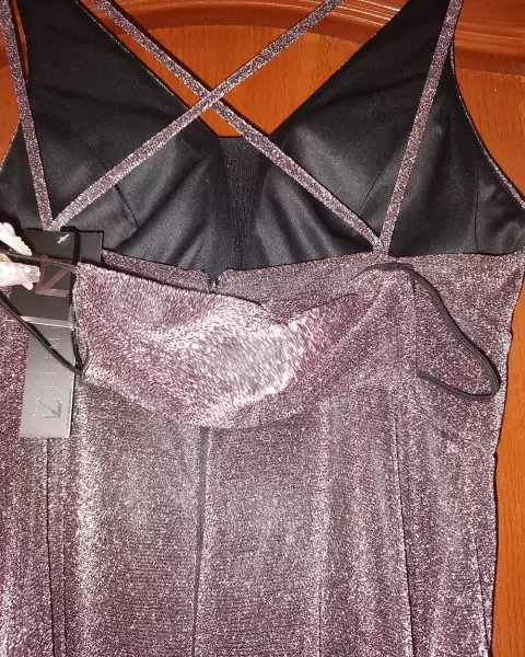 Vestido morado brillos Liz Minelli. Talla 34 exclusivamente la tele es brillosa no tiene ningún detalle el cierre y todo está en perfecto estado es totalmente nuevo y luce muy bonito
