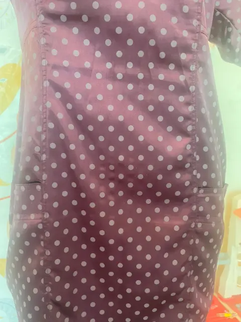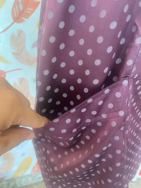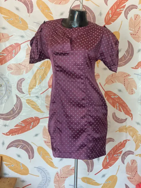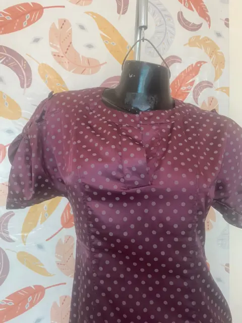 Vestido Morado de Bolitas. Precioso vestido morado con bolitas, tiene bolsas, se ajusta muy lindo al cuerpo. Detalles de uso, foto #7☑️ Acepto ofertas razonables en compras inmediatas.