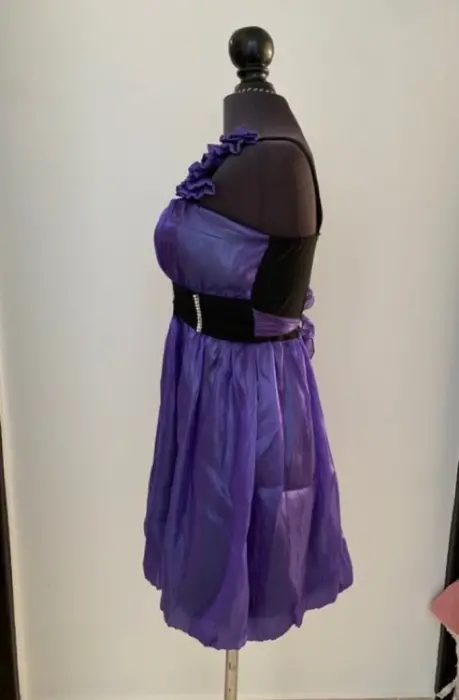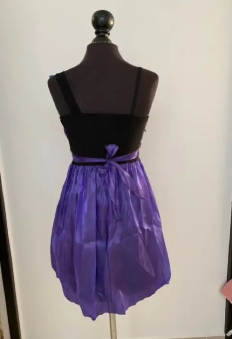 VESTIDO MORADO ROCIO JESMAR TALLA CH. Bonito vestido de fiesta, el color está increíble, tienes detalles super bonitos de piedras en la cintura y se ajusta por detrás con una cinta. Medidas de axila a axila 33 cm y estira hasta 42 cm, de cintura 36 cm y estira hasta 47 cm.