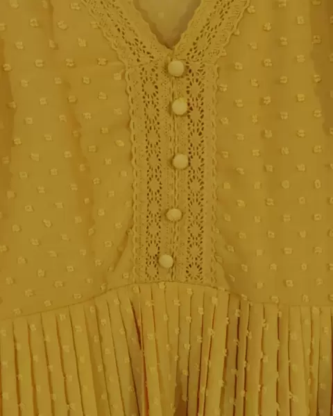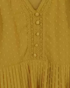 Vestido mostaza. Xolor mostaza, corte de cuello en V, manga larga, con textura, pisado y forro...hermoso color