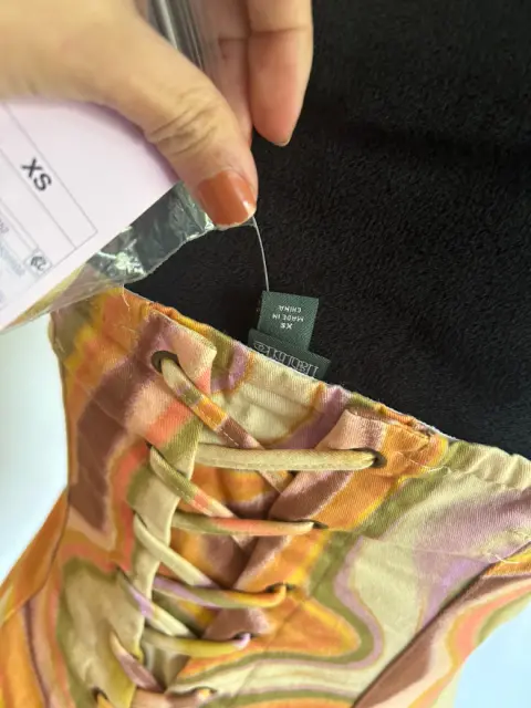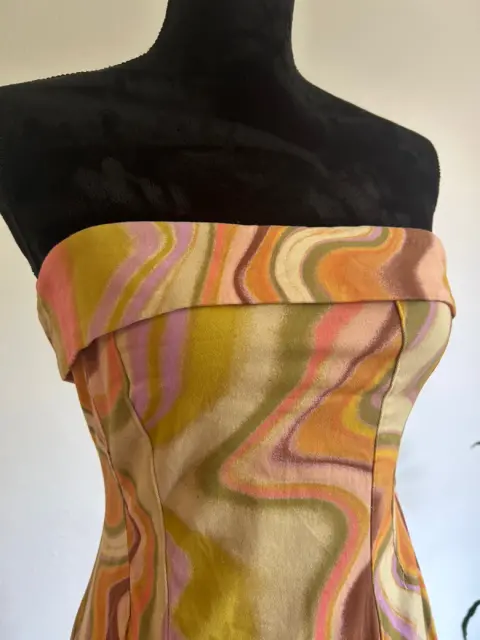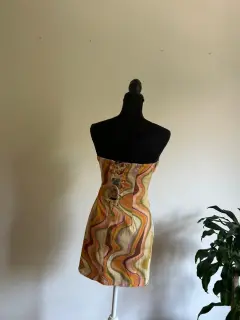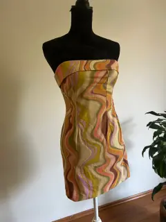 Vestido multicolor mármol de tela tipo mezclilla No tiene detalles aparentes Talla XS Tirantes desmontables