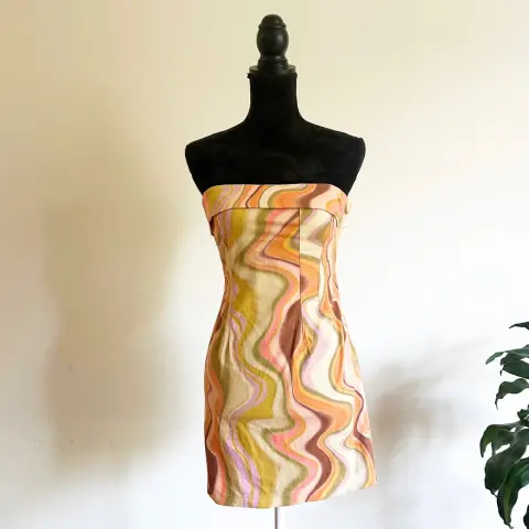 Vestido multicolor. Vestido multicolor mármol de tela tipo mezclilla No tiene detalles aparentes Talla XS Tirantes desmontables