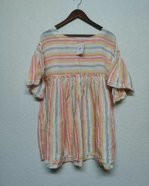Vestido multicolor de algodón. Nuevo con etiquetaTalla Chica100% algodónSuper bonito, tipo oversizeMedidasAxila 58 cmLargo desde hombro 81 cmMedidas de la parte del frente