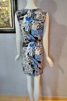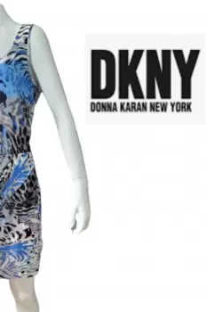 Vestido Multicolor DKNY. Vestido Multicolor talla-10Tela ligera diseño drapeado en la parteDe la falda Cierre en un lado