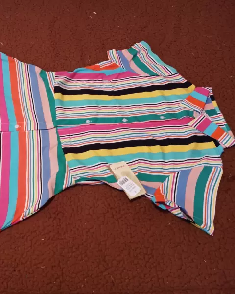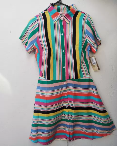 VESTIDO MULTICOLOR MANGA CORTA. Vestido tipo camisero manga corta con puño. Silueta en línea A. Con corte en cintura y forro.Elaborado en tejido de plano.Cero detalles.100% nuevo en excelentes condiciones