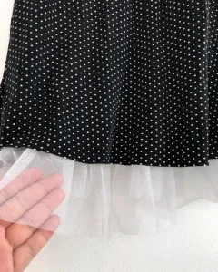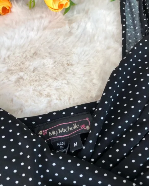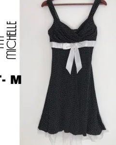Vestido My Michelle lunares. Hermoso Vestido con strech y forro talla mediana (fiel a la talla , color negro con lunares blancos en la parte de abajo del largo trae tul blanco que lo hace lucir elegante, sexi y muy femenino