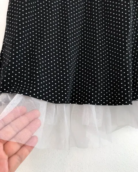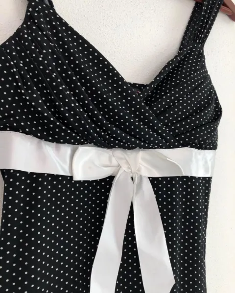 Hermoso Vestido con strech y forro talla mediana (fiel a la talla , color negro con lunares blancos en la parte de abajo del largo trae tul blanco que lo hace lucir elegante, sexi y muy femenino