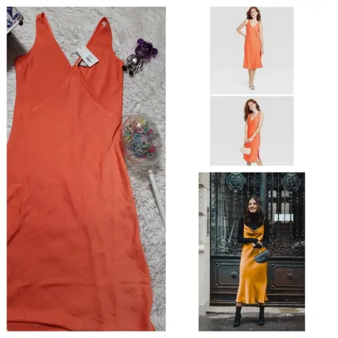 Hermoso vestido en tono naranja tipo lencero ideal para verano e invierno ya que se puede utilizar con algo abajo o un suéter encima