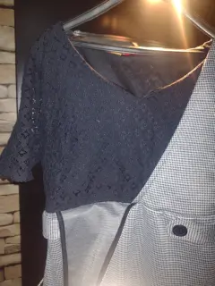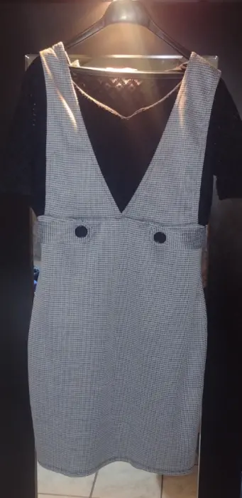 Vestido con cuadritos negro ,tirantes y blusa tipo encaje con forro muy bonito para cualquier ocasión