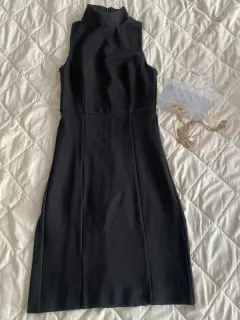 Vestido negro. Tela gruesa, tipo licra. Estira y se amolda muy bien.