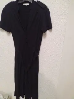 Vestido negro. Vestido negro con botones y cinturón cuello en V de manga corta