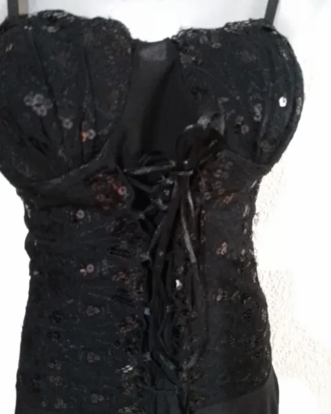 Talla S/ch tela licra color negro hermoso vestido se amolda al cuerpo