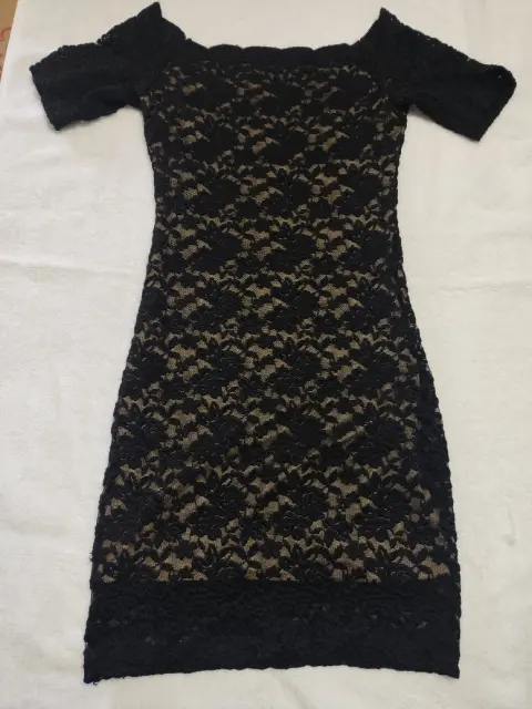 Vestido negro encaje bordado con forro abajo es talla m queda arriba rodilla al cuerpo
