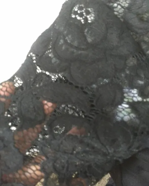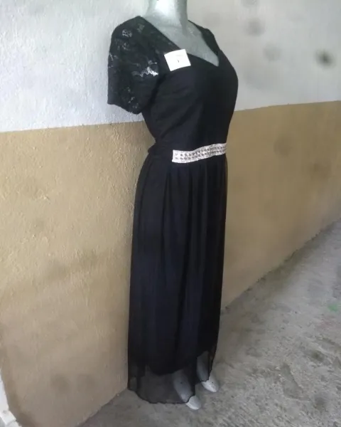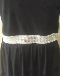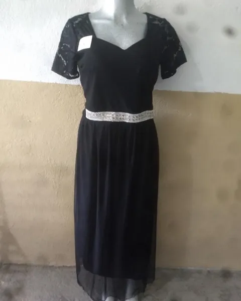 Vestido negro. Vestido de tul, con detalle de aplicación en la parte frontal de la cintura,con manga de encaje, resorte en cintura, no escote.
