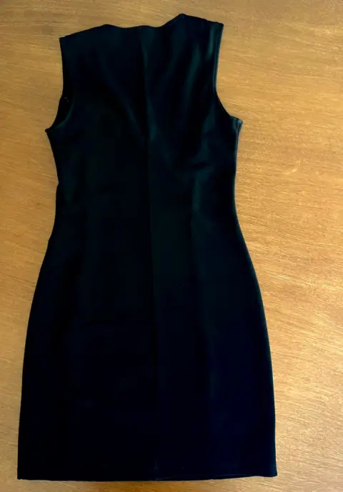 Vestido corto color negro talla M, te ajusta perfecto al cuerpo cuello en V un poco escotado de poliéster .