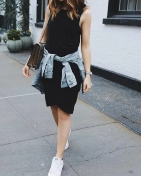 Vestido negro ideal para usar con tenis Tela gruesa/fresca