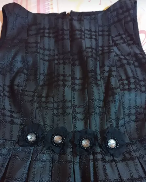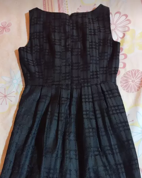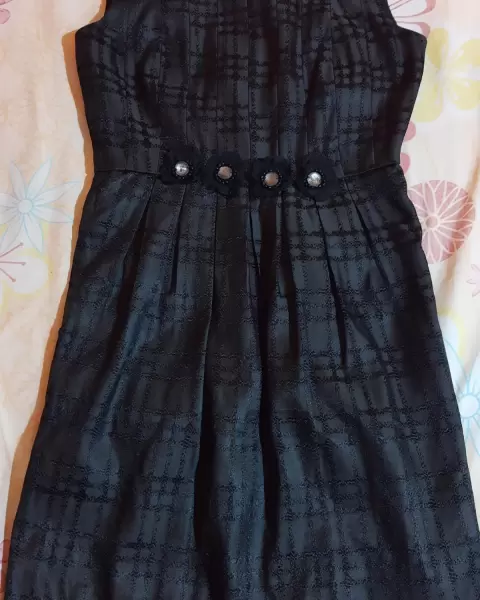 Vestido negro. Vestido corto color negro con detalles floral en la cintura, en buen estado